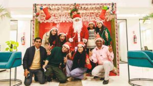 The event featured a variety of engaging activities that brought everyone together. A lively game of Bingo kept participants excited and competitive, while the baking activity allowed members to get creative and enjoy some hands-on festive fun. Adding to the cheer, Santa Claus made his way around the workspace, spreading smiles by distributing chocolates to everyone across the premises.